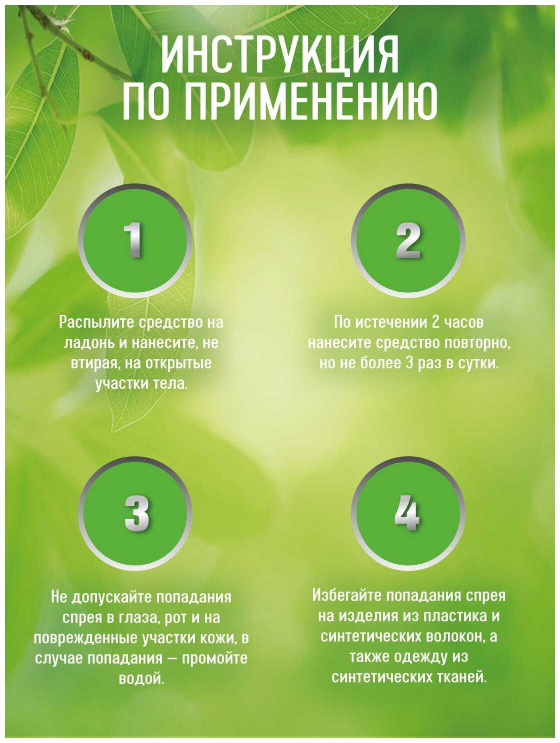 | Способ применения : | Флакон встряхнуть, средство распылить на ладонь и аккуратно равномерно нанести на открытые участки тела, не втирая. Время защитного действия от насекомых до 3 часов. Наносить на кожу не более 2 раз в сутки. Не допускать попадания средства в органы дыхания, глаза, рот и на поврежденные участки кожи. В случае попадания - промыть водой. Не рекомендуется применять детям, беременным и кормящим женщинам. Предохранять от попадания на изделия из пластика и синтетических волокон. |