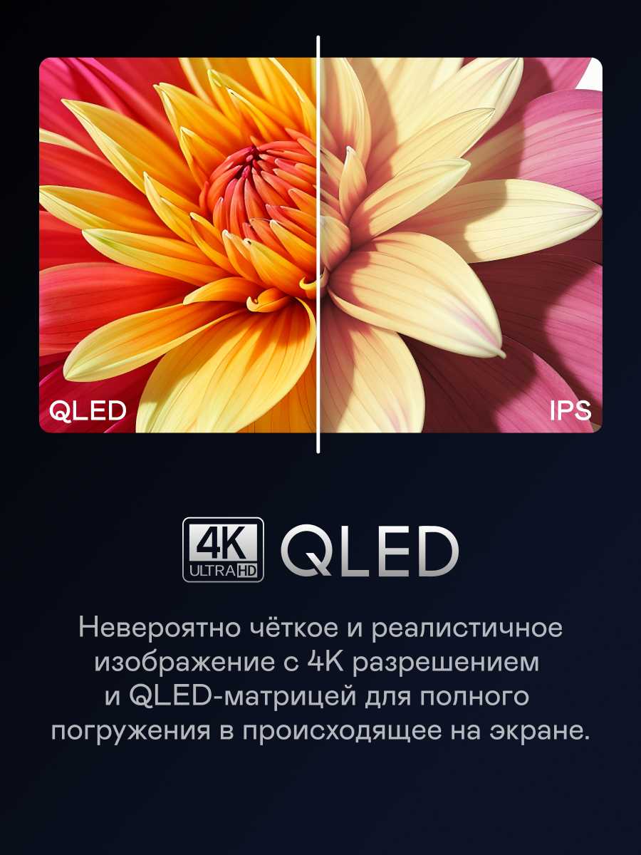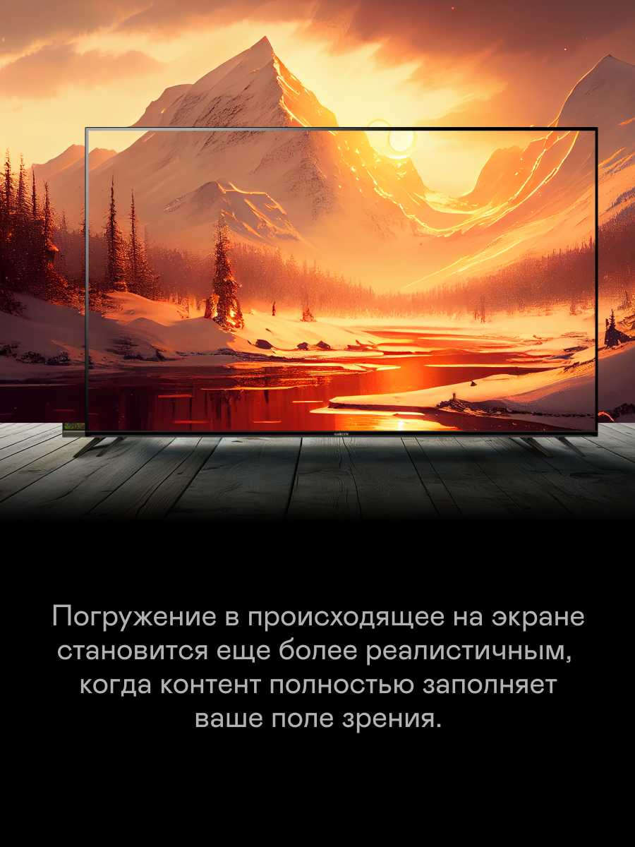 - + По сравнению с прошлым телевизором, этот в полтора раза больше и полностью заполняет пространство зала. Цветопередача яркая и естественная, для такого бюджетного сегмента изображение выходит просто потрясающим, разница с обычными моделями огромная. Особенно круто смотрится в динамичных фильмах вроде 'Аватара' или картин Кристофера Нолана, можно полностью погрузиться в красоту сцен. Звук объёмный и глубокий, низкие частоты передаются чётко, дополнительная акустика не требуется. Угол обзора широкий, даже сбоку видно всю картинку целиком, это реально удобно. Подключение к сети стабильное, приложения запускаются быстро, библиотека контента доступна без задержек, пульт реагирует отзывчиво. Передавать изображение с телефона на экран работает отлично, полезная опция для повседневного использования. YouTube функционирует без сбоев, этот телевизор заменил все мои домашние устройства, теперь смотрю всё на нём.