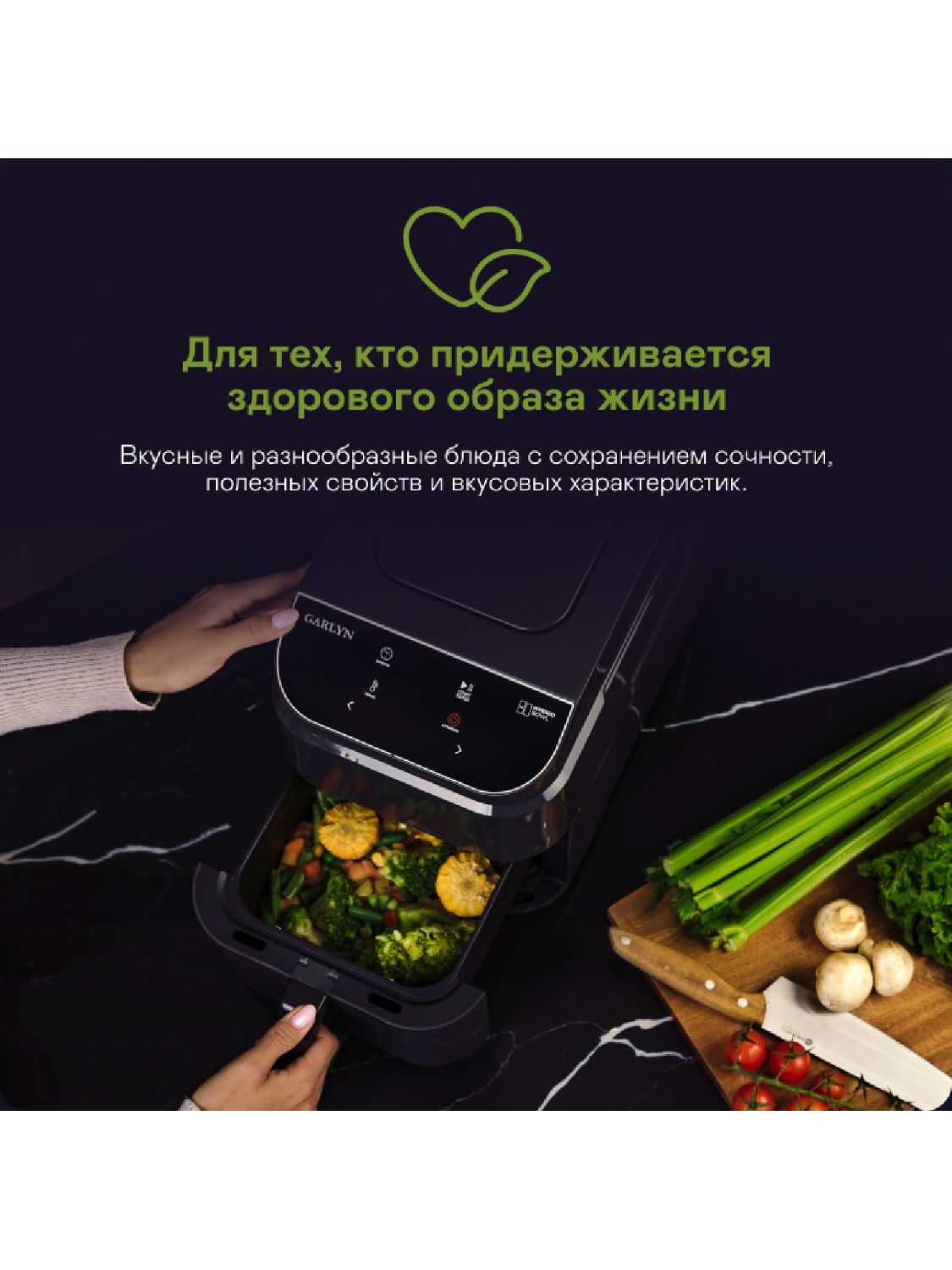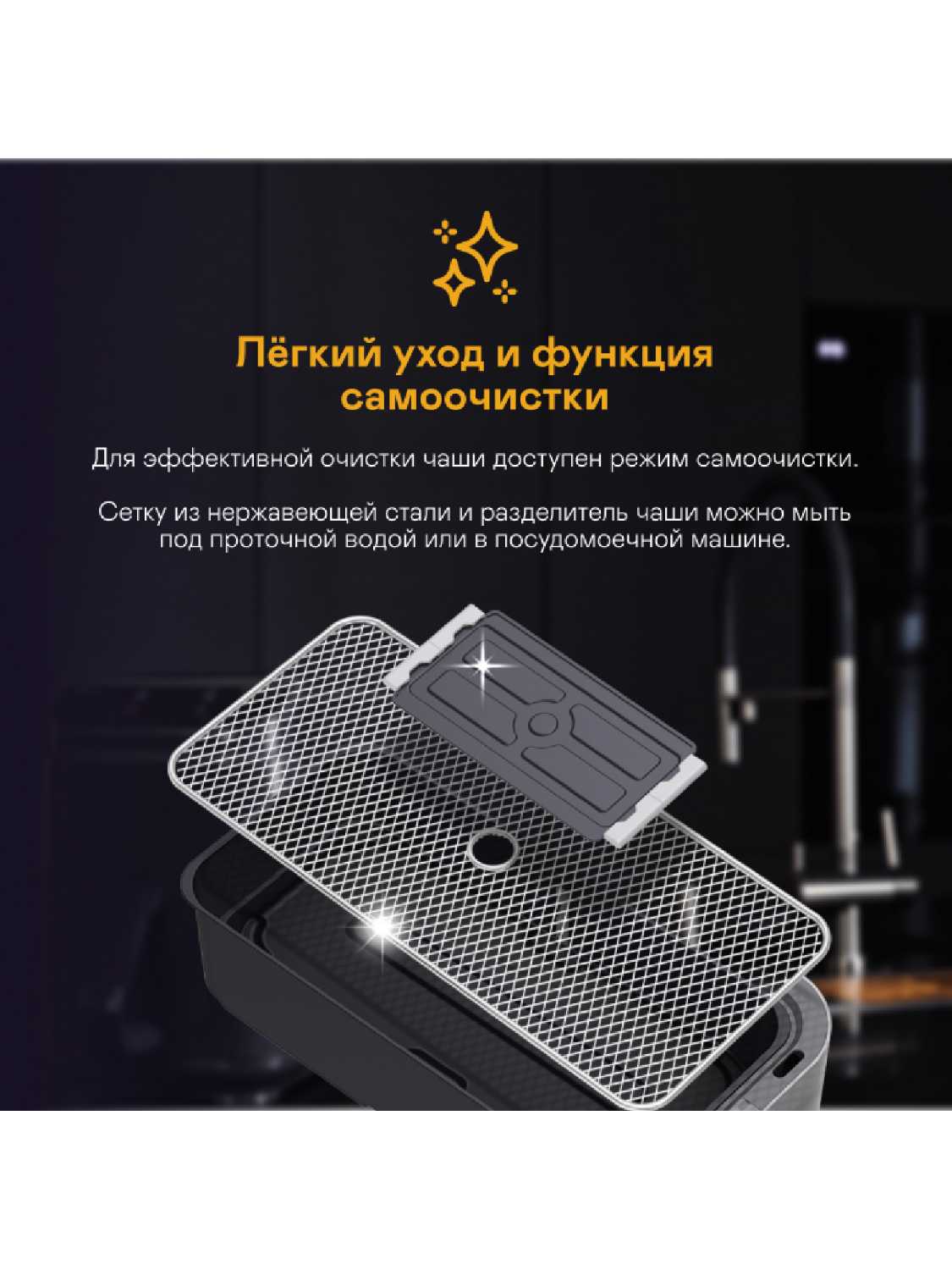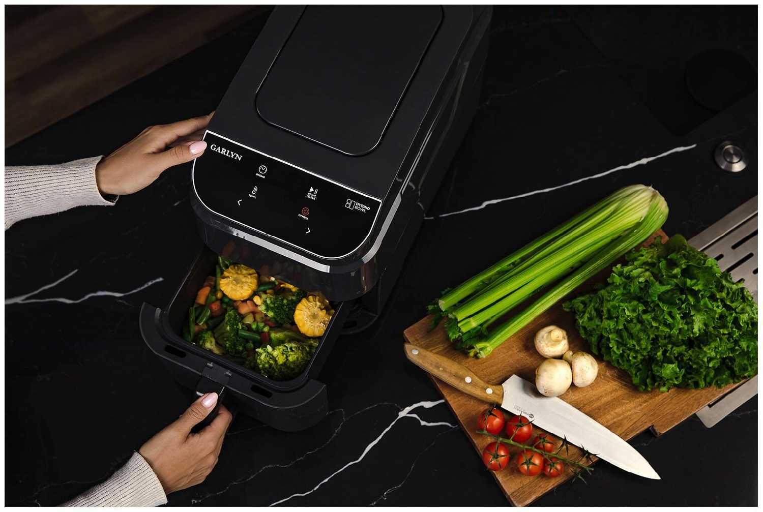 Друг и помощник на кухне. Дружить с ним очень приятно, потому как он имеет семнадцать автоматических программ и можно готовить сразу одновременно два блюда, потому как чаша разделена. При том что я не супер повар, но в нем всегда почему-то получается идеально вкусно. Это как мультиварка, только лучше. Здесь можно печь, запекать, варить и жарить и много еще чего. Еще люблю добавлять для аромата щепу, в основном ольховую, получается легкая дымка и приятный аромат. Еще в нем есть предварительный разогрев, быстро достигает заданную температуру. Модель очень компактная, на рабочей поверхности занимает минимум места. Ухаживать за ним легко, помыл и протер - никаких проблем.