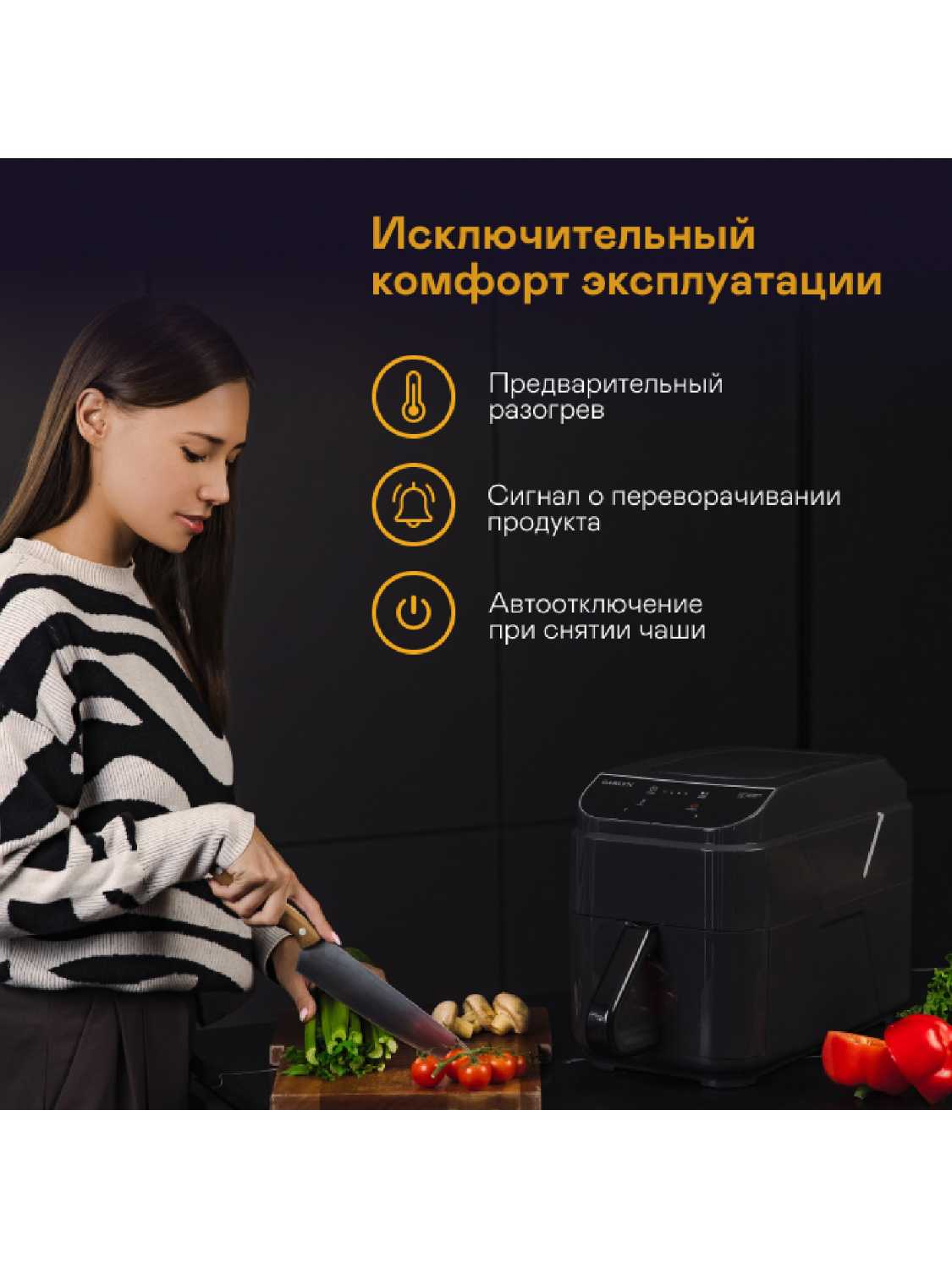 - + Отличный аэрогриль