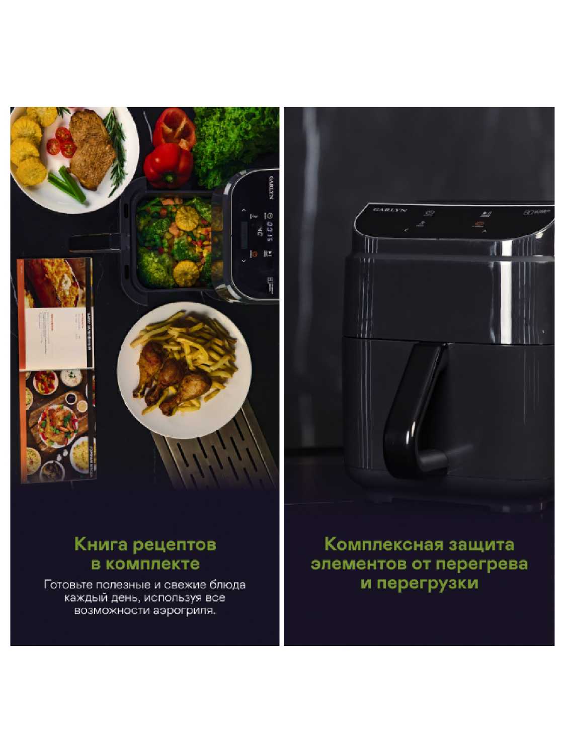 В комплекте идет книга рецептов, многое хочется попробовать и из нее. В аэрогриле просто готовить, а также ее просто мыть. Всей семьей мы заценили удобство, даже дети неплохо справляются с прибором, после школы уже могут приготовить несложный обед.