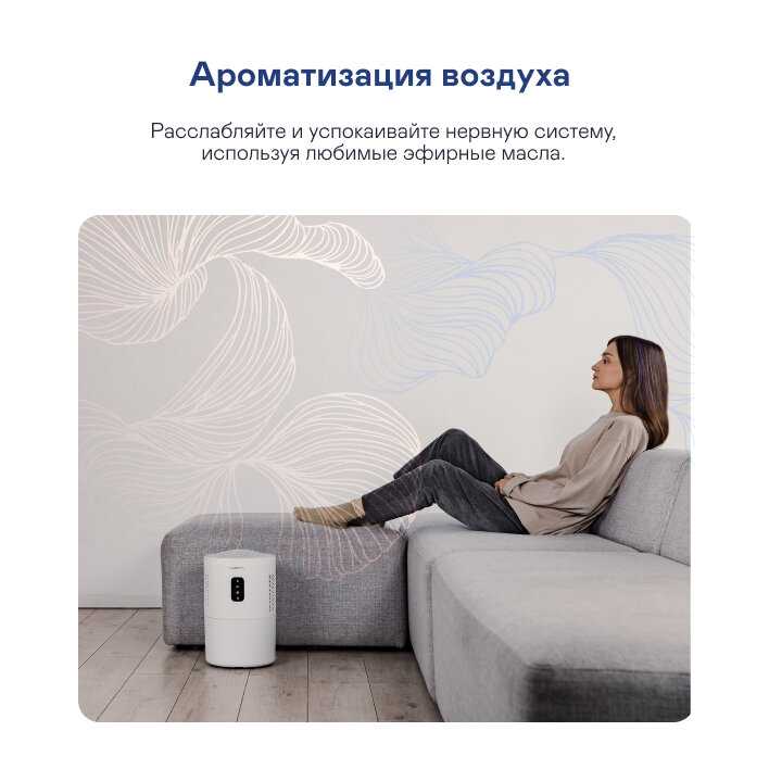 Есть встроенная функция ароматизации. Дети не особо любят, когда чем-то дополнительно пахнет, поэтому включаю, когда они уходят в школу. Распространяет аромат равномерно. Позволяет хорошо расслабится. Люблю включить ароматизацию и полежать почитать какую-нибудь книгу)