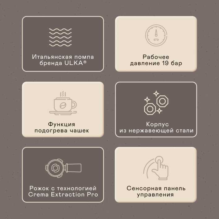 - + компактный и довольно стильный кухонный прибор. Сенсор работает без косяков. Кофе вкусный, пенка норм. Не особо шумный при готовке.