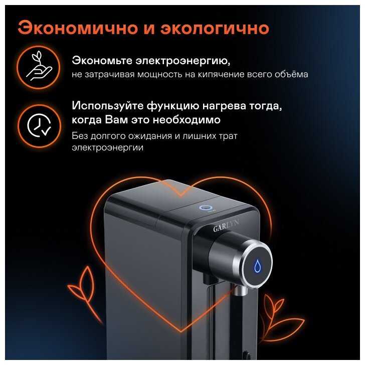 - Горячая вода доступна в любое время без повторного нагрева, идеально для чая, кофе или каш.