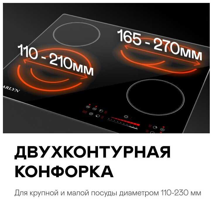 Одним из основных преимуществ панели является ее мощность в 6600 Вт, что позволяет быстро и эффективно готовить пищу. Конфорки двухконтурные, что делает использование панели еще более удобным и позволяет готовить на двух разных температурах. Также устройство оснащено 9 уровнями мощности, что позволяет точно настроить температуру для любого вида блюд.