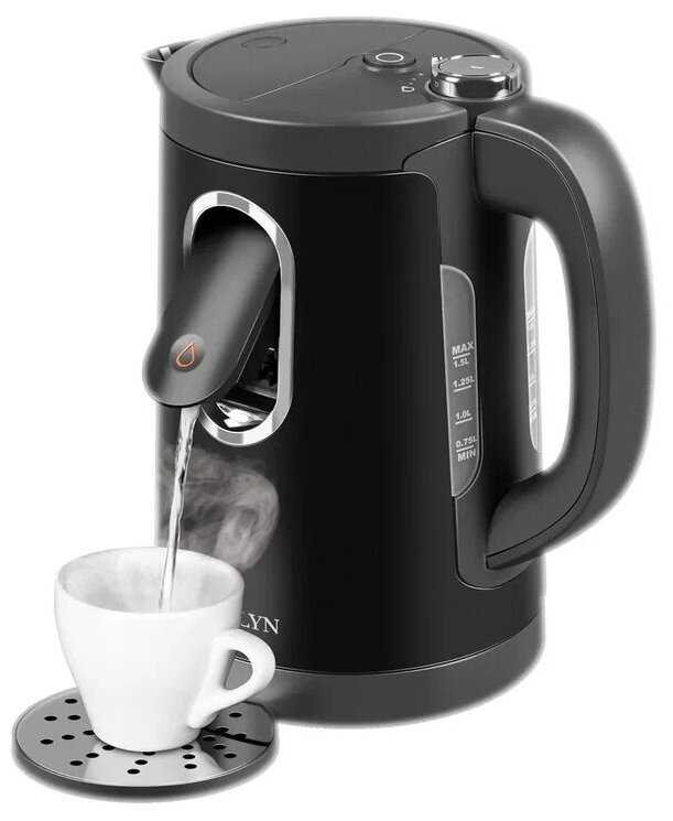 Автодозатор позволяет наливать воду, не поднимая чайник, через боковой носик с предустановленными порциями. Доступны три фиксированных объёма: 150 мл (маленькая чашка), 200 мл (стандартная кружка) и 250 мл (большая порция). Механизм оснащён подставкой-каплесборником, предотвращающей проливы, а вода подаётся точно в центр чашки благодаря продуманной конструкции. -