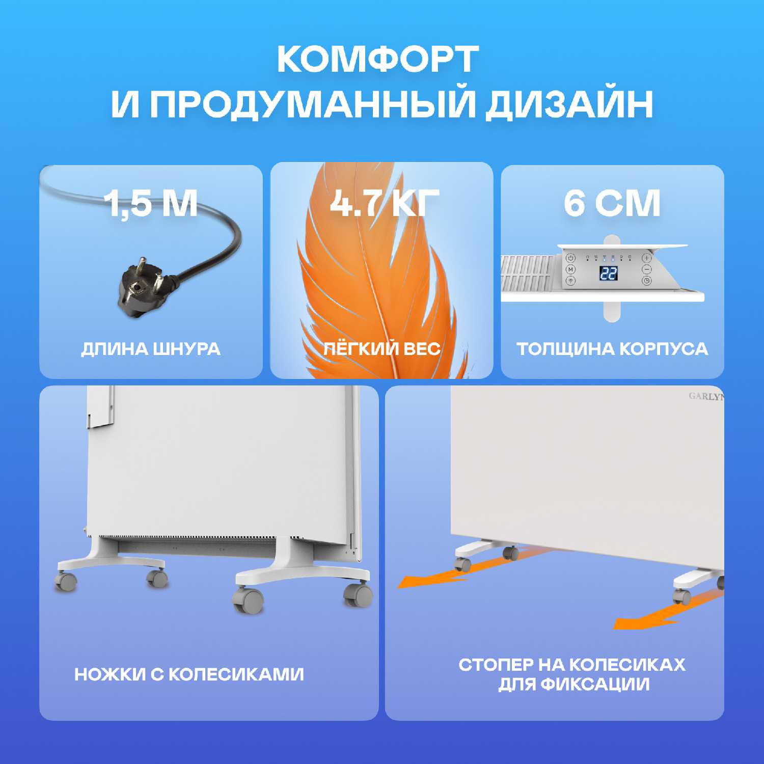 Обогреватель безопасный, есть защита от перегрева и опрокидывания. Еще крутая функция это датчик открытого окна. Он отключает прибор при проветривании, если вдруг забыли выключить. Дизайн понравился, корпус тонкий, можно установить на стену. А можно и с ножками на колесах использовать. В целом, доволен покупкой. Обогреватель надежный и функциональный.