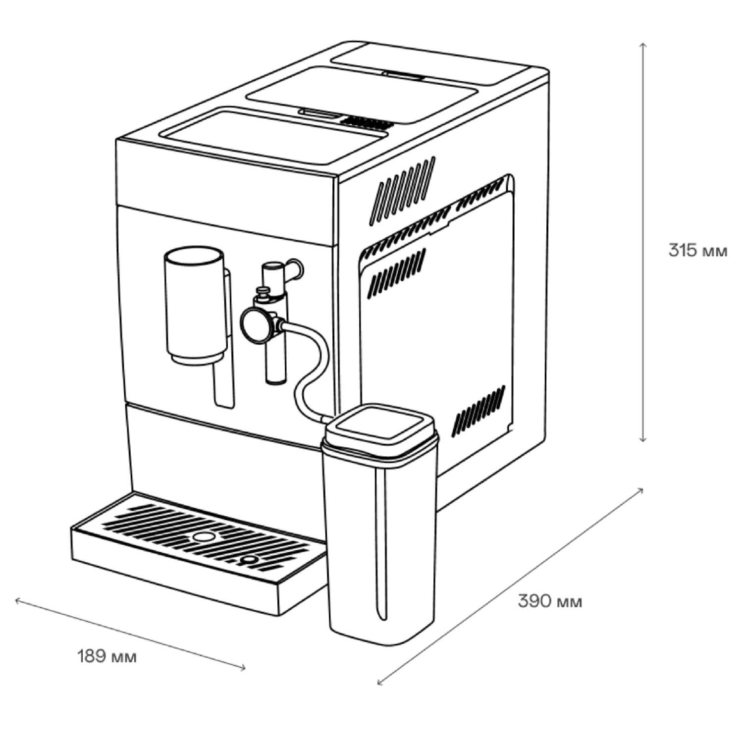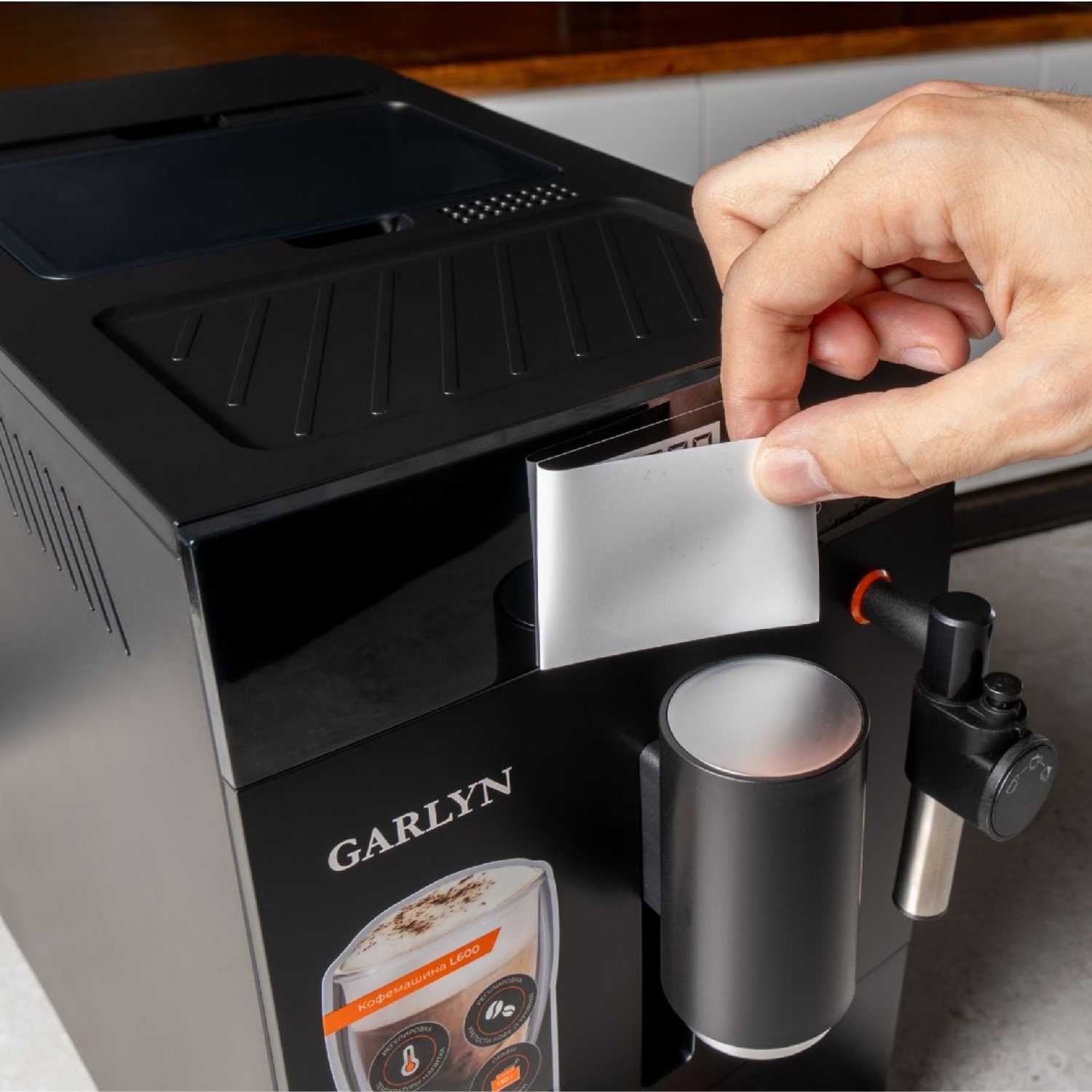 - Длина трубки капучинатора (15 см) обеспечивает совместимость с высокими термокружками.