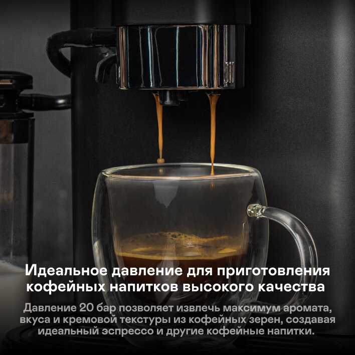 - Насыщенный вкус эспрессо и других напитков благодаря давлению 20 бар