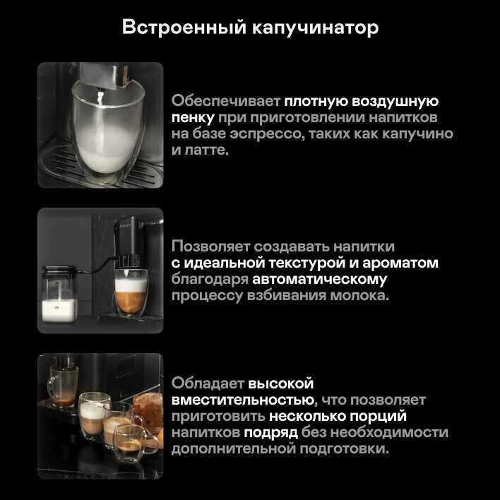 Начнем с внешнего вида. Компактная, черная, строгая красотка. Хорошо вписалась в кухню, не занимает много места, что для меня было важно. Заявленные функции: капучино с густой пенкой, латте, эспрессо... и всё это в одно касание! Первое утро с ней – просто волшебство. Одно нажатие, и ароматный капучино был готов. Пенку делает такую густую, что ложка стоит. Давление в 20 бар – не шутка, эспрессо получается супернасыщенным. Конечно, переживала за настройки, но оказалось всё до смешного просто. Сенсорный дисплей понятен даже моей бабуле. Установила свои параметры – и кофемашина запомнила любимые пропорции.