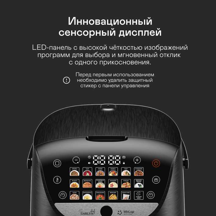 Цветной дисплей и световая индикация наглядно отображают текущий статус работы – нагрев, приготовление, подогрев или завершение программы. Это позволяет контролировать процесс даже на расстоянии, не подходя близко к устройству. Некоторые пользователи вначале испытывали затруднения с интерпретацией значков, но после краткого ознакомления система становится интуитивно понятной. -