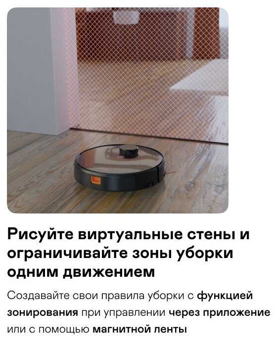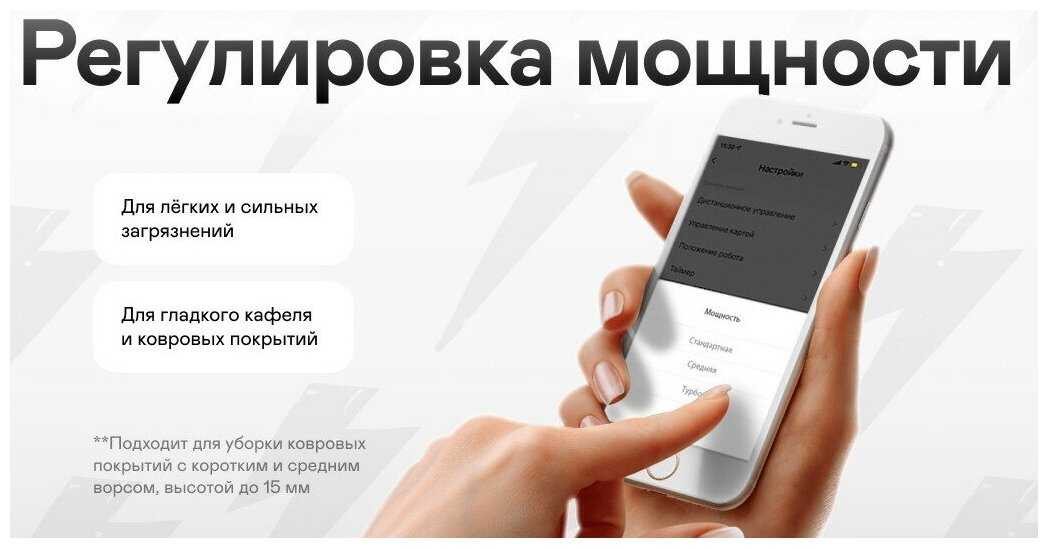 Управление мне очень понравилось, можно с пульта, а можно с приложения. С приложением, конечно, удобнее, можно и стены нарисовать, и ограничение по зоне сделать.