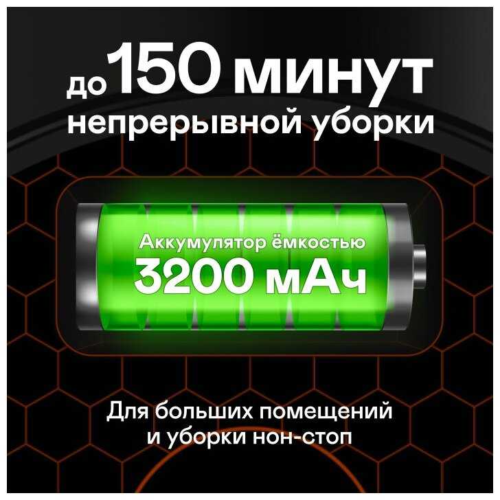 - + Время работы. На небольшой мощности он может убирать часа 1,5-2. Это более, чем достаточно для моей двушки.