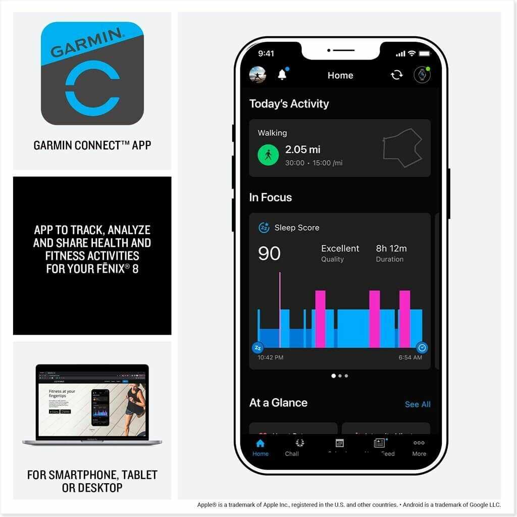 До Fenix 8 у меня были только Mi Band 3 когда-то. Сравнивать их смысла нет. Решил себя порадовать и купить часы, чтобы и вид имели, и тренировки считали, и заряжать не нужно было каждый день (привет apple watch). Долго выбирал, смотрел обзоры, остановился на Fenix 8 47mm Amoled Saphire. В целом доволен, что хотел то получил. Комплектный ремешок планирую разве что сменить. При моем использовании держат заряд дней 10-12, очень хорошо. 52мм держат конечно подольше, но совсем громоздкие на руке. Богатый функционал, множество настроек, можно долго экспериментировать и прийти к оптимальным вариантам. С айфоном подружились, 2 приложения пришлось поставить для управления. Синхронизация работает, в Фитнес и Здоровье данные улетают.