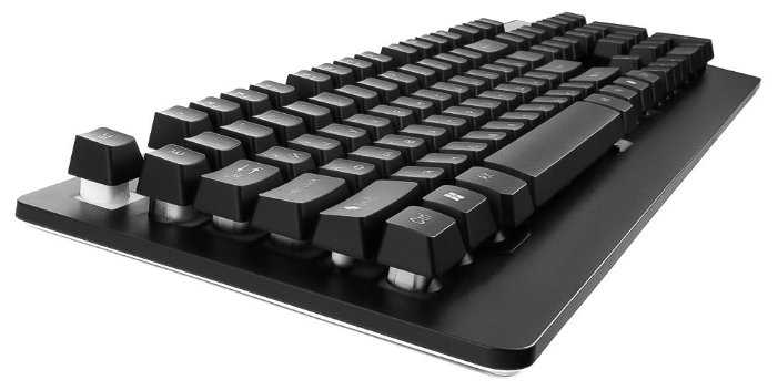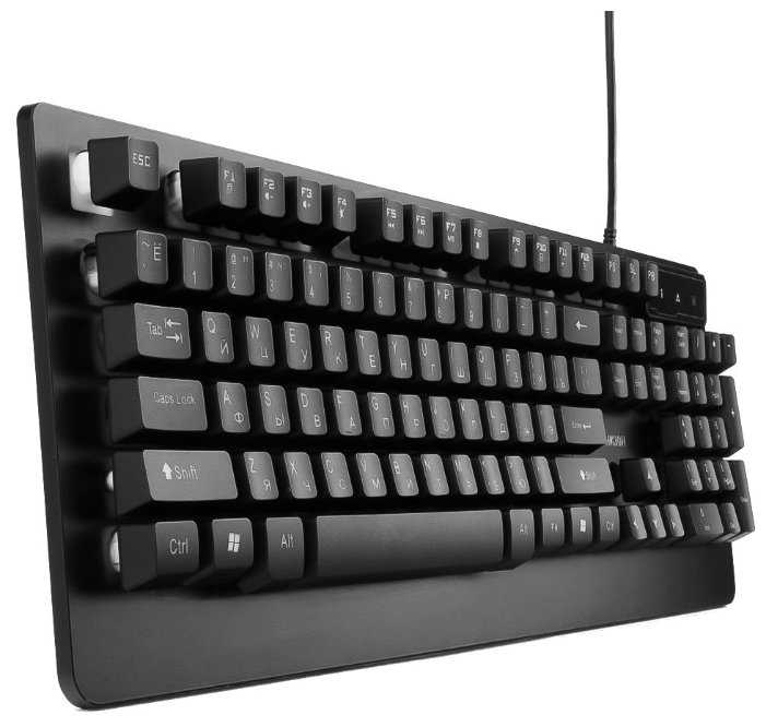 - + Скелетная конструкция, мне нравится её вид. Собрана на металлической пластине. Есть отключаемая подсветка. При этом подсвечено не только пространство между клавишами, но и символы на них. Есть управление мультимедиа по Fn+F-key. Тяжёлая, почти 800 граммов. Печать приятно, не прогибается, не дребезжит, не ездит по столу. Нормально заделанный провод - вряд ли переломится. Для мембранки - ну прямо очень хорошо, даже отлично.