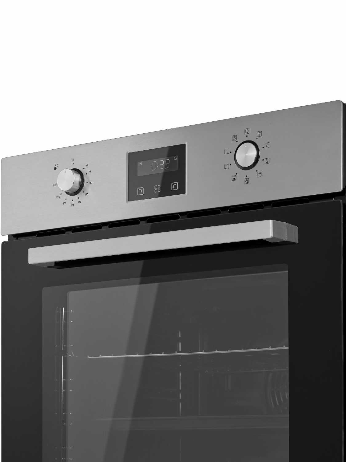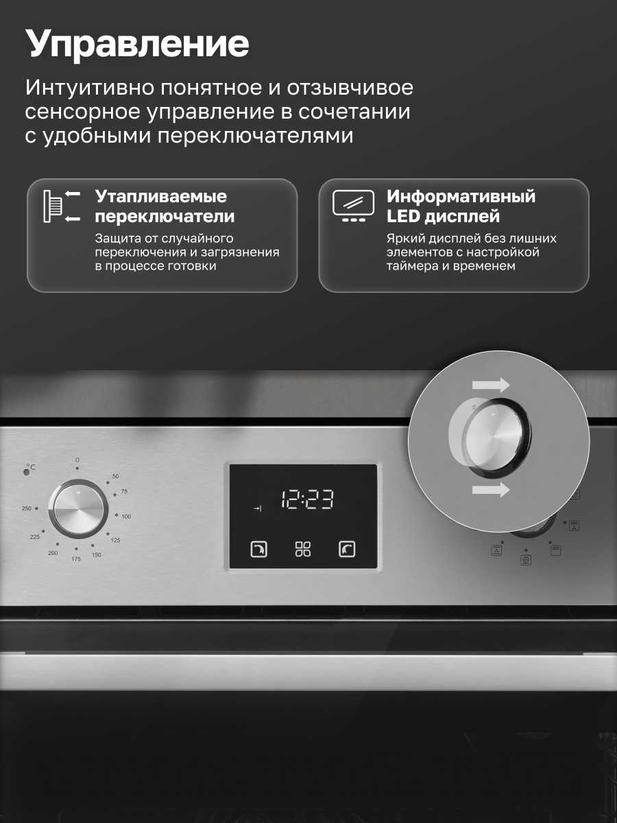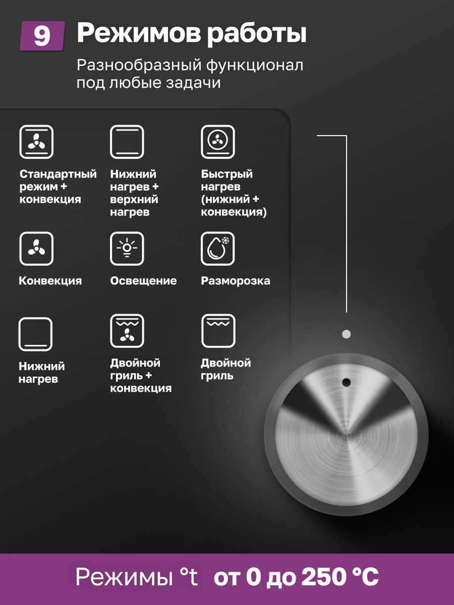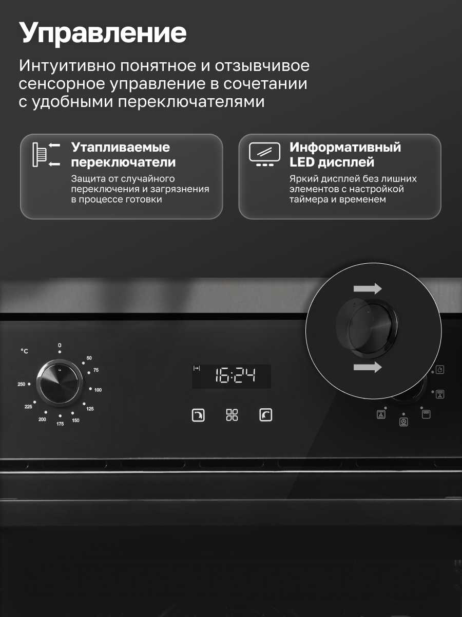 - + все как в описании, размеры стандартные, в комплекте противень и решетка. утапливаемые ручки выглядят удобно, эксплуатация покажет. есть все нужные режимы