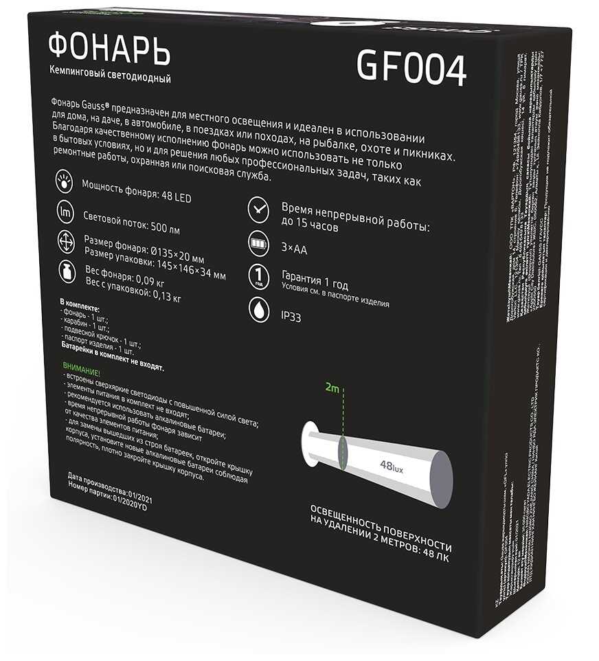 Характеристи gauss GFL004