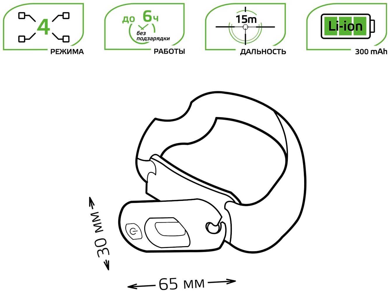 - дальность освещения: 15 м