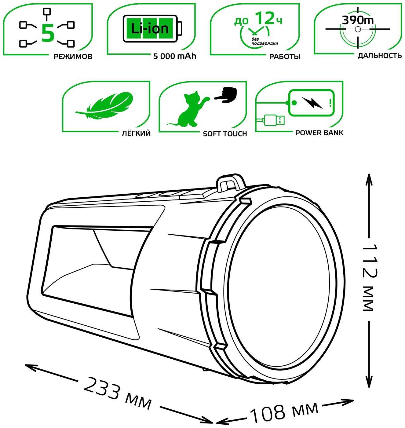 Особенности : | встроенный power bank, дальний свет, дневной белый свет, прожектор, экономичный режим |