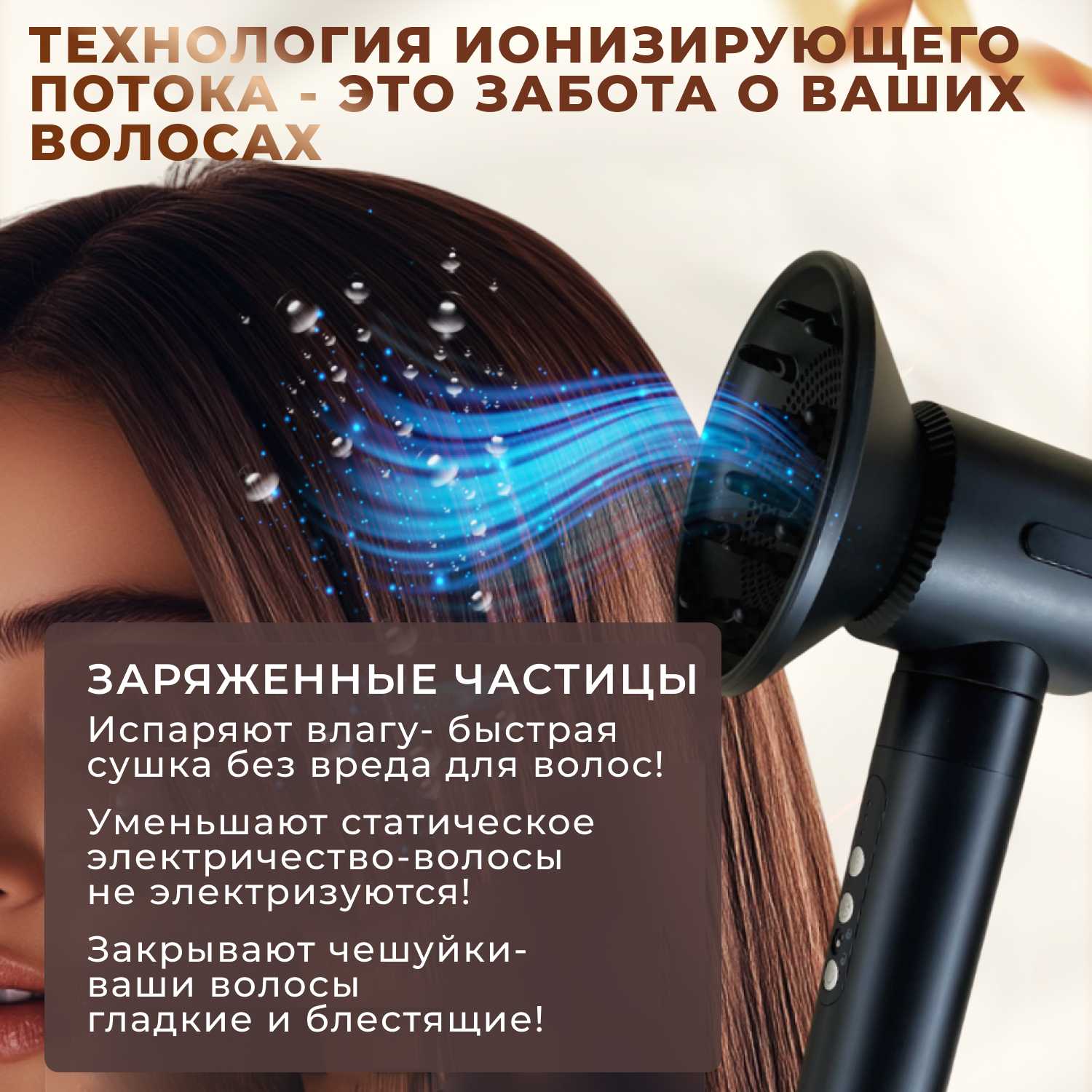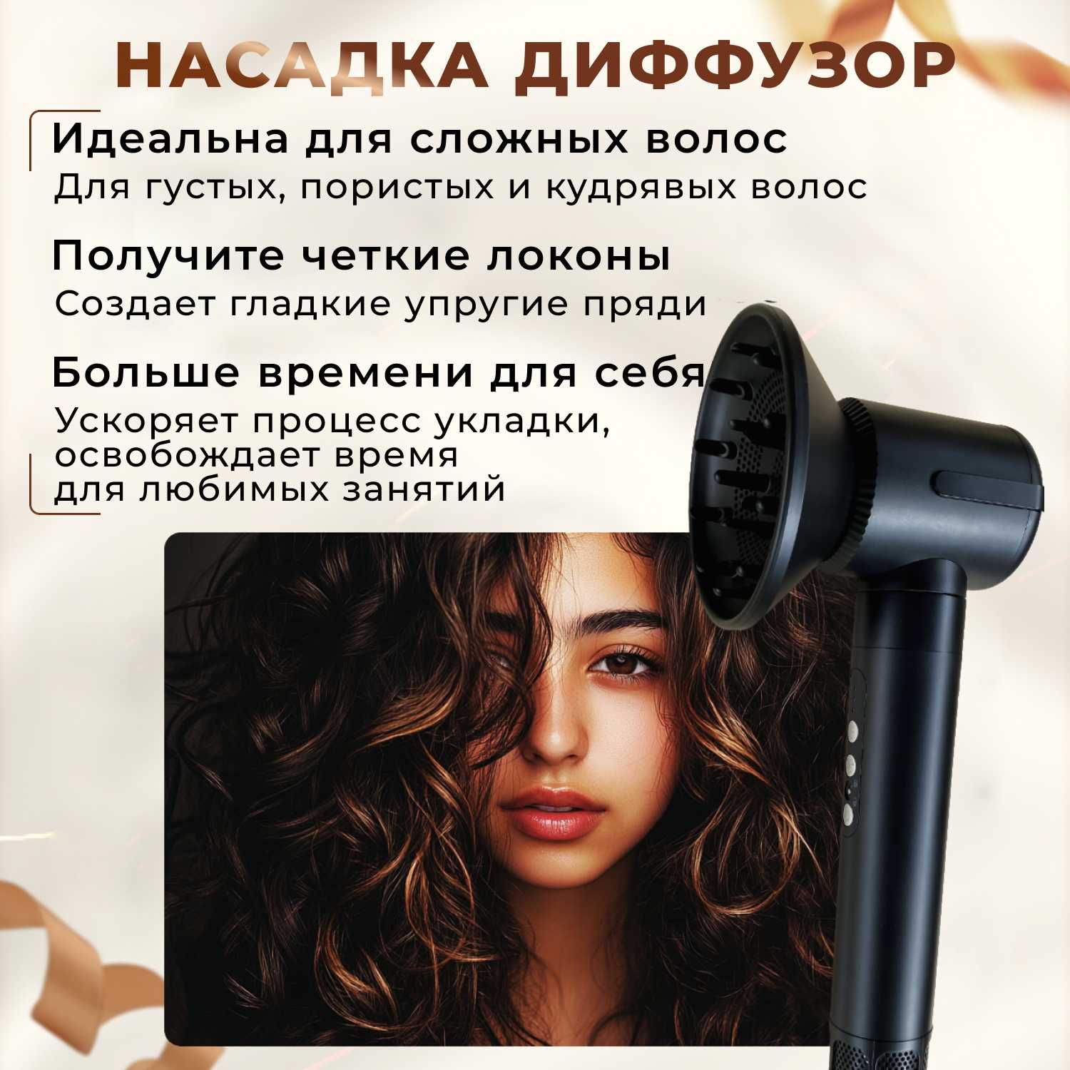 Сам фен очень удобный. Сушит прекрасно, несколько режимов вентиляции и тепла. Локоны получаются шикарные. Волосы выглядят как-будто только из салона.
