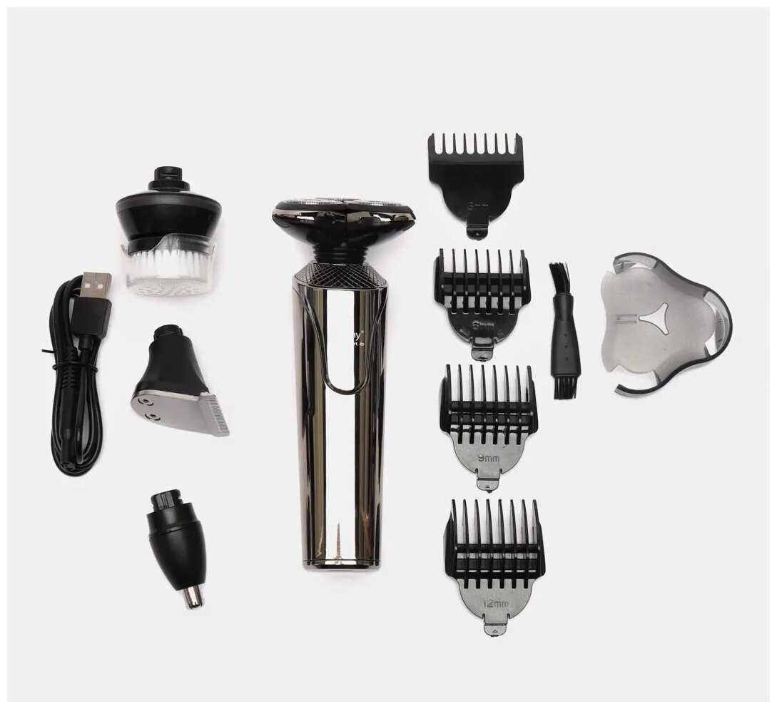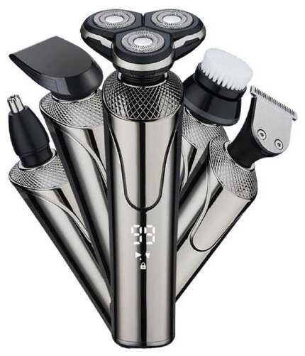 - В комплекте 6 насадок: триммер для бороды, насадка для тела, носа/ушей, щётка для очистки, что позволяет использовать устройство как универсальный гаджет.
