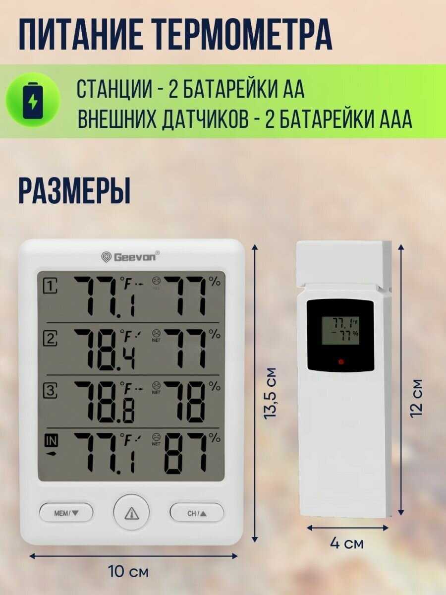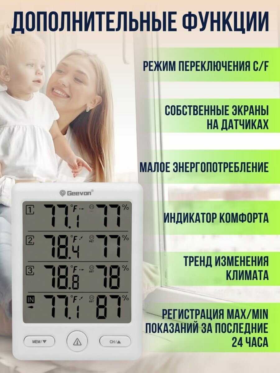 Geevon Термометр-гигрометр с 3-я беспроводным?