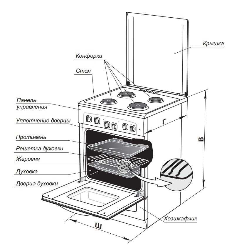 Особенности конструкции : | подсветка духовки, ящик для посуды |
