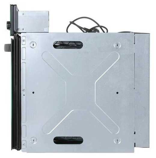 Встроенный вентилятор охлаждает дверцу, поэтому она нагревается умеренно — это повышает безопасность, особенно в семьях с детьми. Однако при длительной работе на высоких температурах (свыше 180°C) легкий нагрев возможен. Стекло тонированное, что затрудняет визуальный контроль без подсветки.