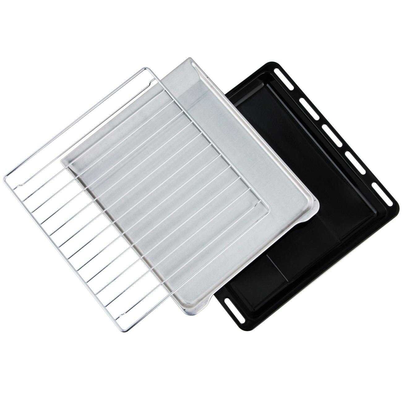 - Полнооткрывающийся ящик вмещает решетки и формы, освобождая столешницу и повышая организованность кухни.