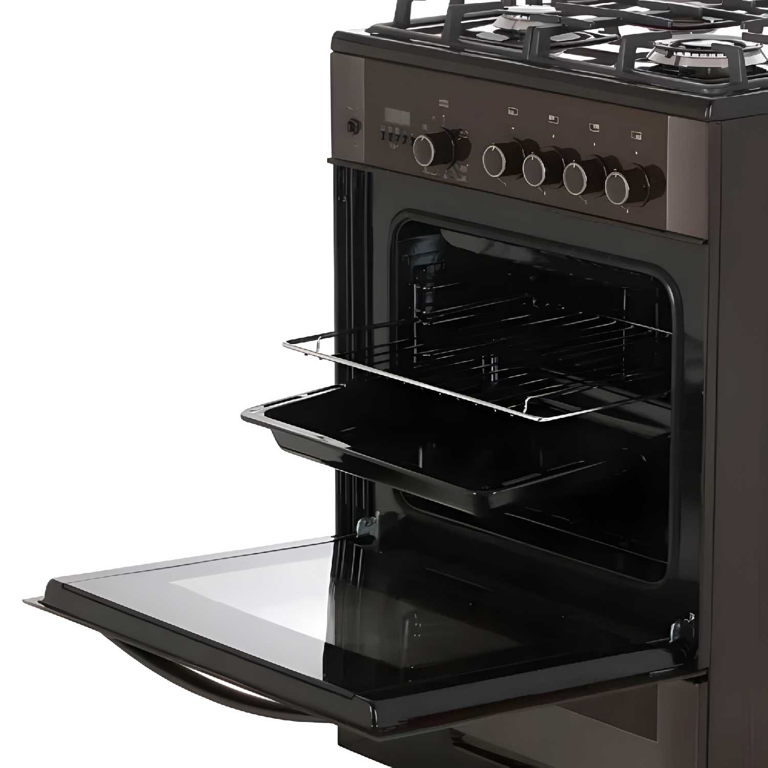 Мощная газовая плита! Как выглядит мне лично очень сильно понравилась за счет коричневого цвета. Места на самой плите хватит чтоб занять каждую конфорку и готовить одновременно. Духовка очень мощная оказалась, выпекать в ней что то одно удовольствие) Еще и вместительная, между прочим. Решетки чугунные, долговечные!)