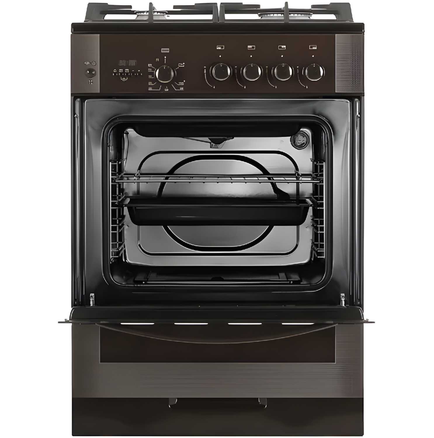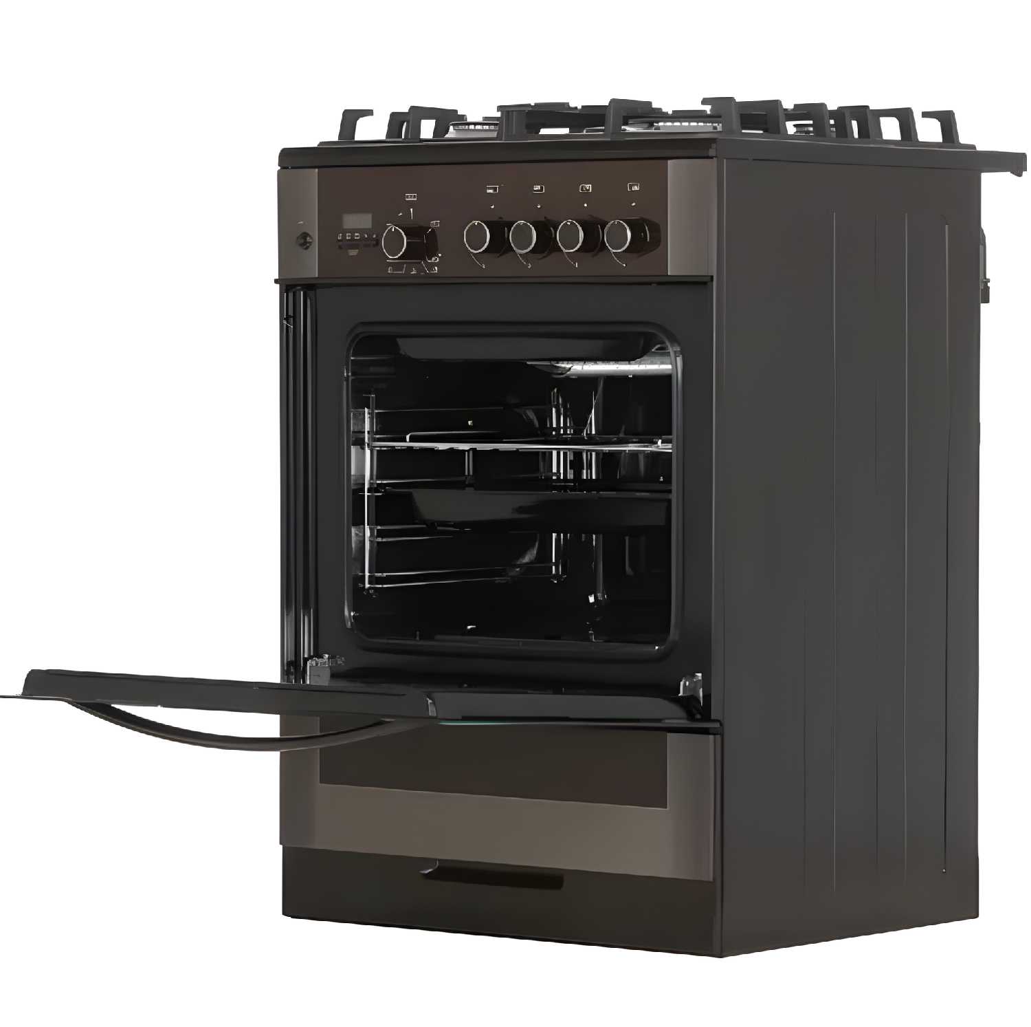 - + конфорки разные по мощности, духовка просторная, газовый гриль, комплект аксессуаров