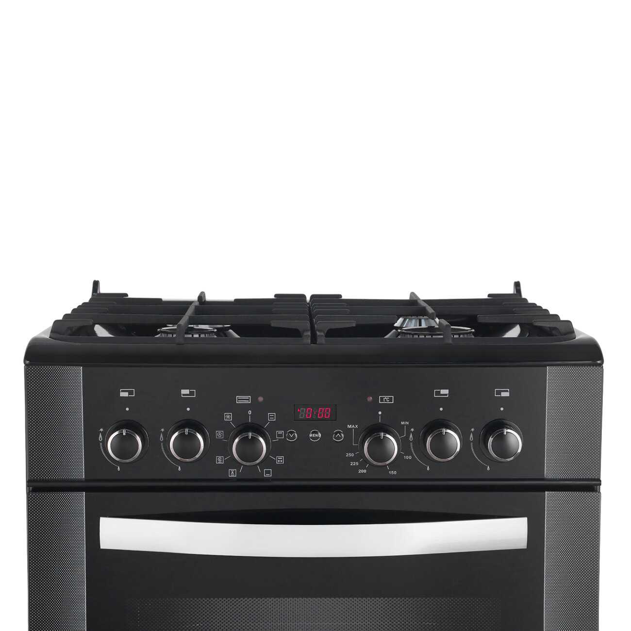 - Круглые поворотные переключатели газа и режимов духовки обеспечивают точное и плавное позиционирование, позволяя легко выставить необходимую мощность или температуру.
