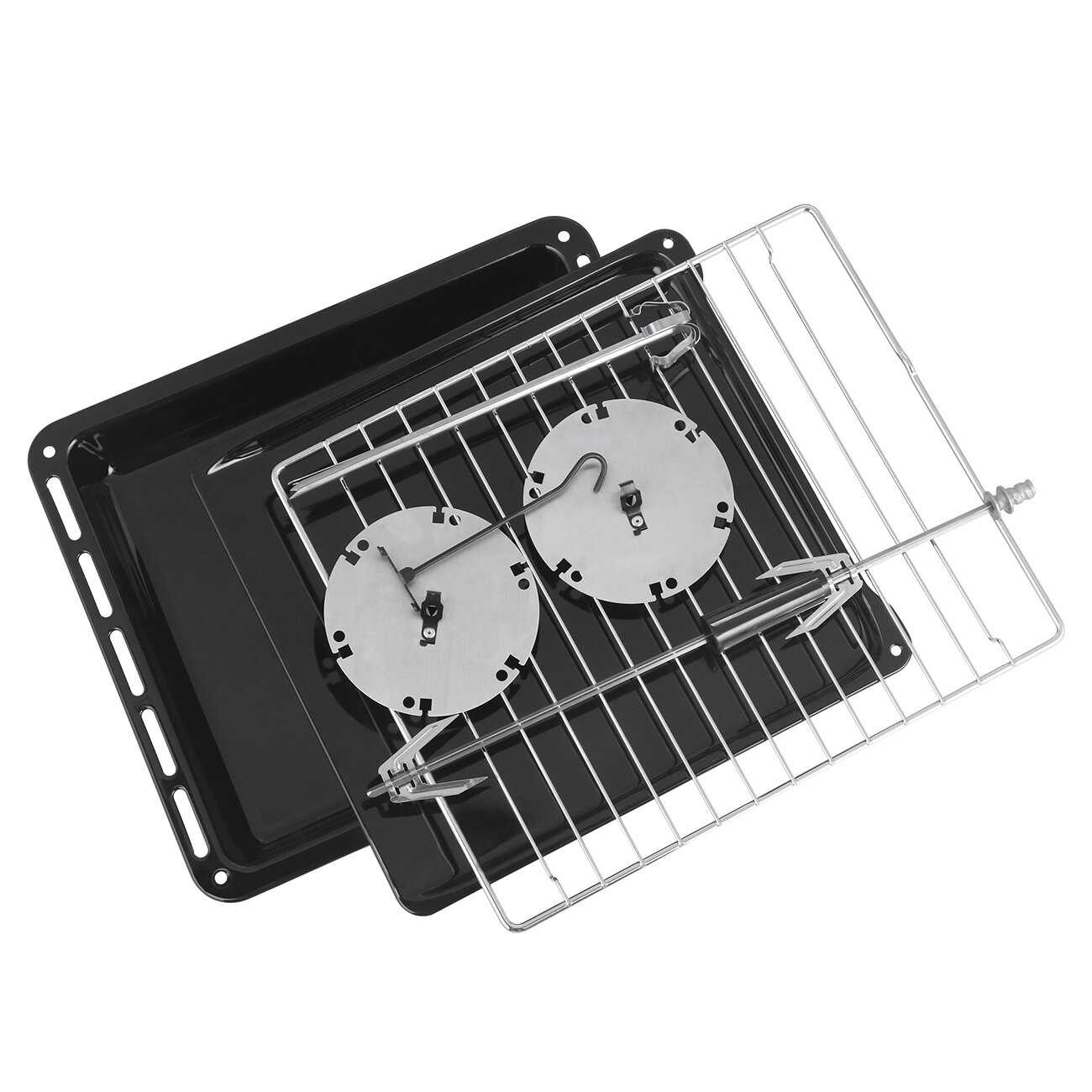 - В комплектацию входят практичные аксессуары: шампуры для гриля, противень и глубокая жаровня, расширяющие кулинарные возможности без дополнительных покупок.