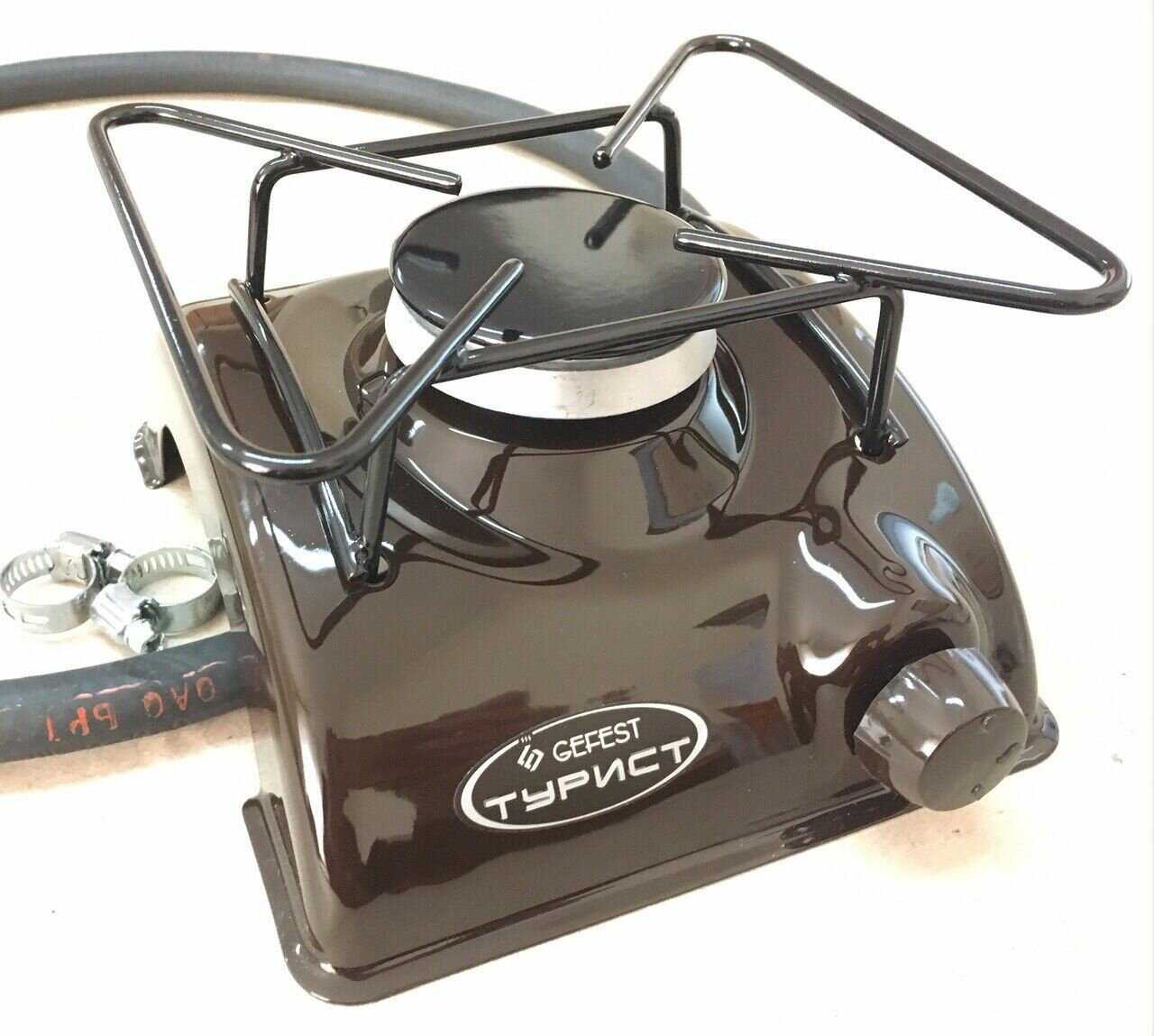 - + Купила балон 5 литров, редуктор обычный без регулировки давления и эту плитку GEFEST ПГТ-1 м.802 Туристическую, пламя отличное, крышка комфорки фиксируется и снабжена двумя усиками что-бы не потерялась, можно на дачу или на пикник ..