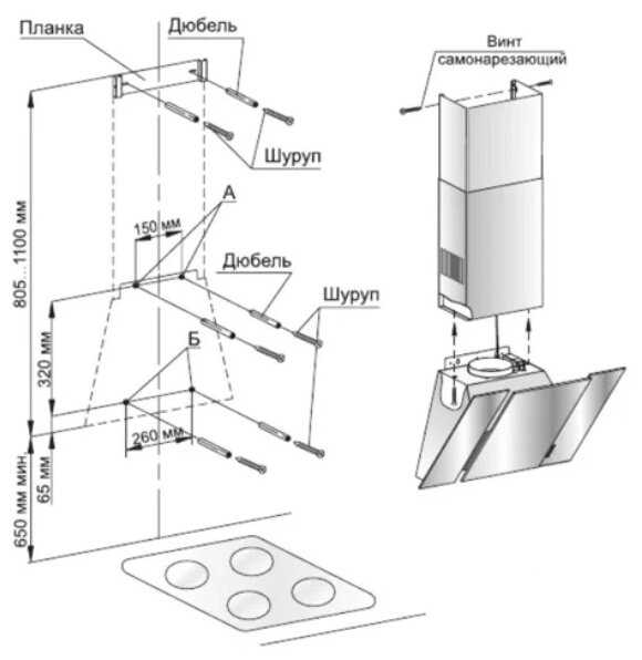 Очень долго разбирался с монтажом, в комплекте два короба для закрытия гофры, короба имеют разный размер, поэтому при использовании данной вытяжки нужно точно замерить расстояние от плиты до нижнего края вытяжки и от верхнего края вытяжки до потолка - иначе могут быть проблемы с установкой короба. Производитель все это очень точно описывает в инструкции.