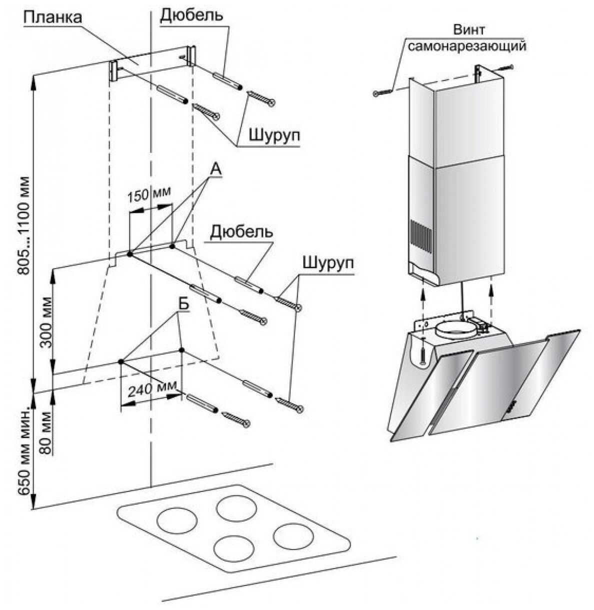 Очень долго разбирался с монтажом, в комплекте два короба для закрытия гофры, короба имеют разный размер, поэтому при использовании данной вытяжки нужно точно замерить расстояние от плиты до нижнего края вытяжки и от верхнего края вытяжки до потолка - иначе могут быть проблемы с установкой короба. Производитель все это очень точно описывает в инструкции.
