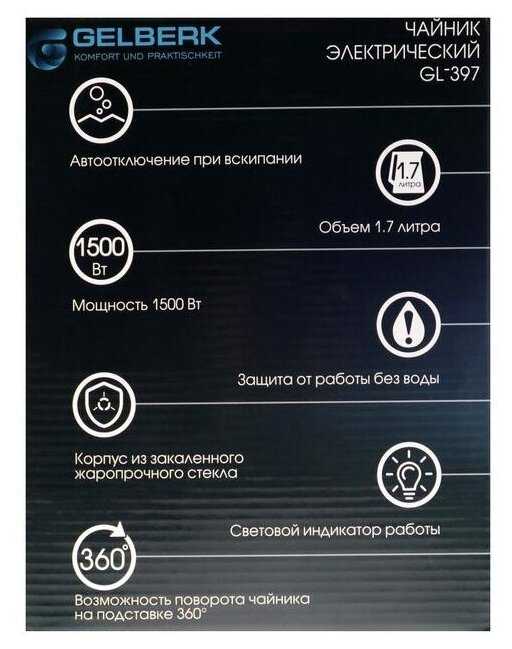 Безопасность : | блокировка включения без воды, блокировка крышки, отключение при снятии с подставки |