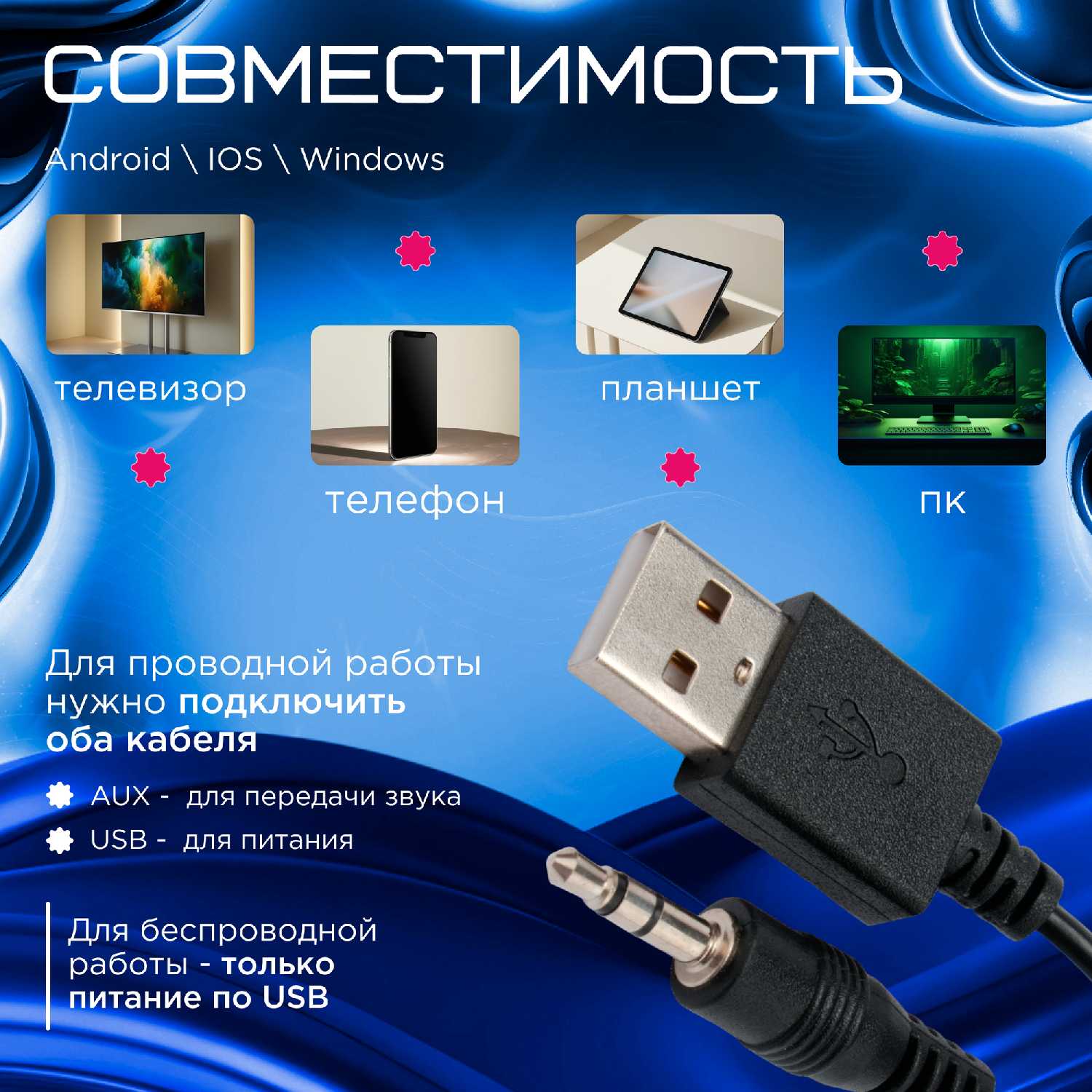 - Это снижает удобство для телефонов или ТВ, где предпочтительна беспроводная интеграция без кабелей.