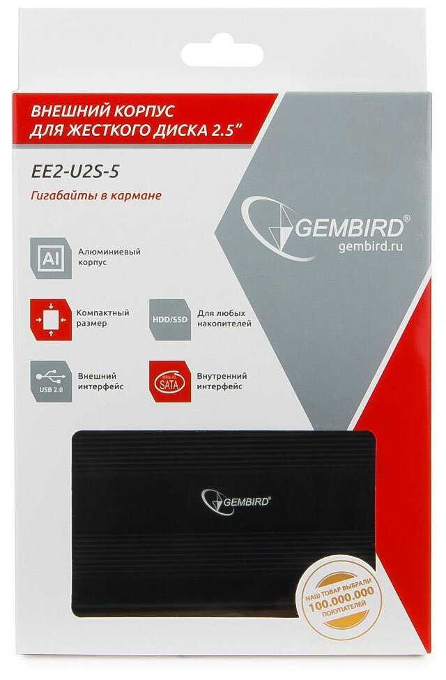 Комплектация : | Контейнер 2.5 Gembird EE2-U2S-5-S, серебро, USB 2.0, SATA, металл |