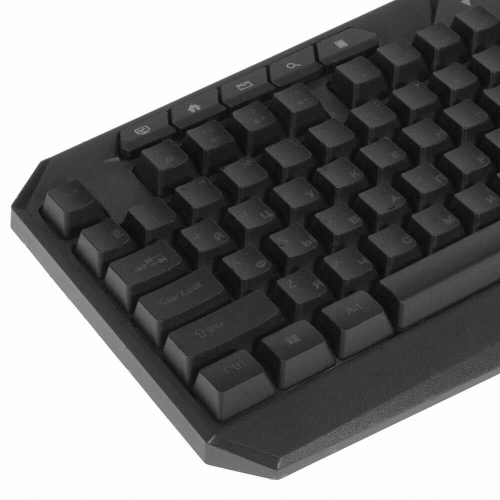 Корпус клавиатуры выполнен из вторичного пластика, что придаёт ей «дешёвый» вид, хотя на функциональность это не влияет. Ножки с прорезиненными накладками недостаточно устойчивы: при активном использовании клавиатура скользит по столу, что вынуждает пользователей фиксировать её двусторонним скотчем. Кабель подключения тонкий, без тканевой оплётки, как заявлено в описании, что повышает риск перелома провода. Отдельные экземпляры имеют заводской брак: неработающие клавиши (например, Ж, Б, Ь) или некорректную работу подсветки, что требует разборки и повторной сборки для восстановления контактов. Клавиши со временем могут «притираться», уменьшая люфт, но износ напыления символов остаётся под вопросом — долговечность краски не проверена в долгосрочной перспективе.