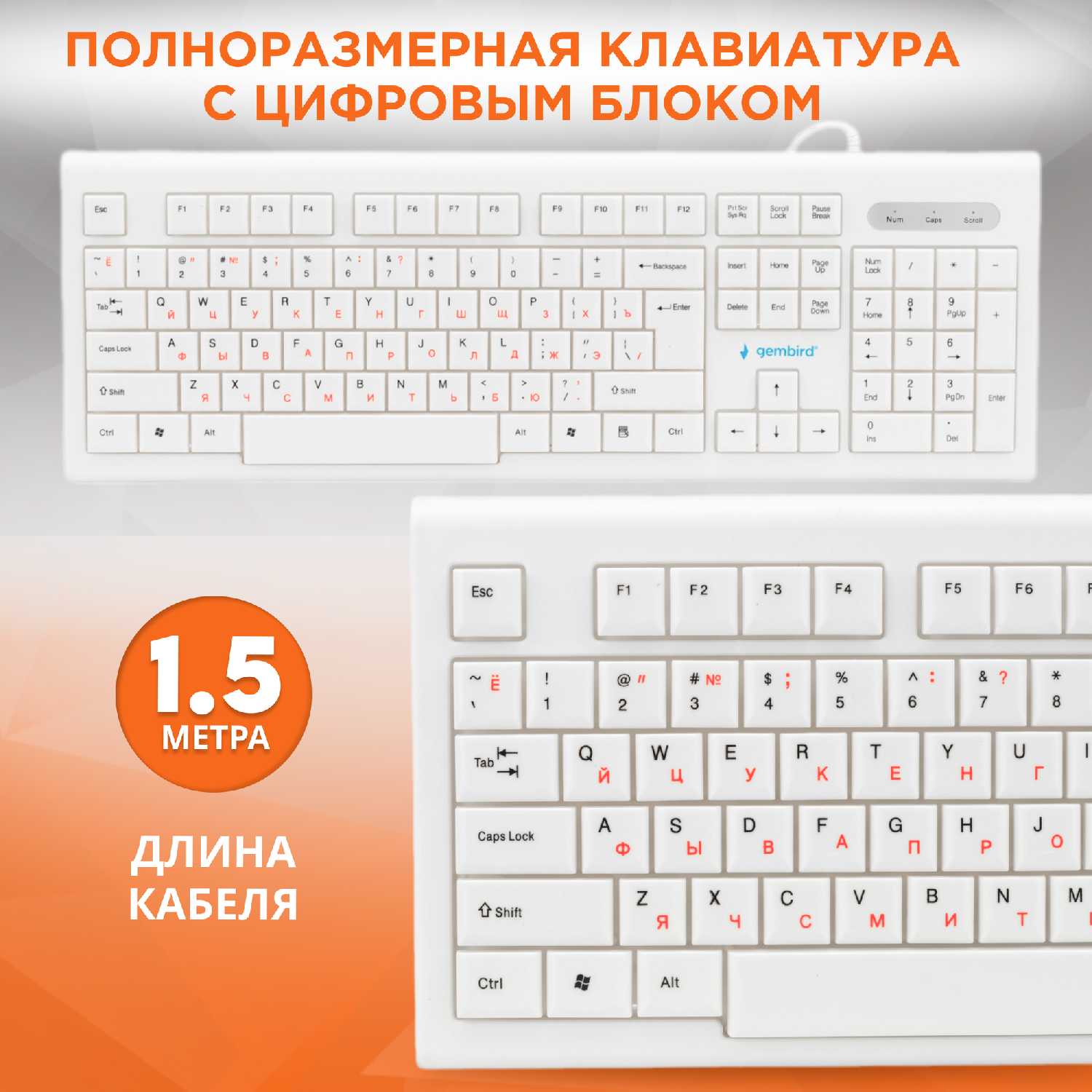 - Провод длиной 1.5 м обеспечивает свободу размещения без "путаницы кабелей".