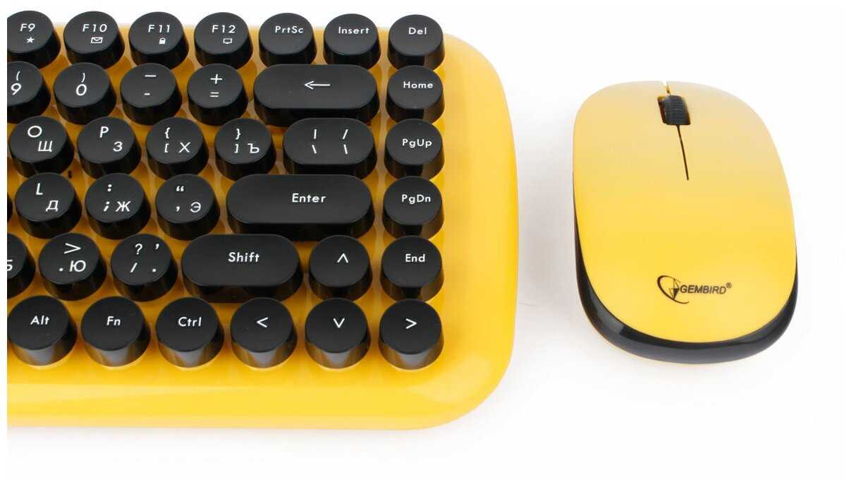 - Многие пользователи отмечают ретро-стиль, напоминающий печатную машинку, с яркими цветами (желтый, зеленый), что делает комплект привлекательным и подходящим для дома или офиса.