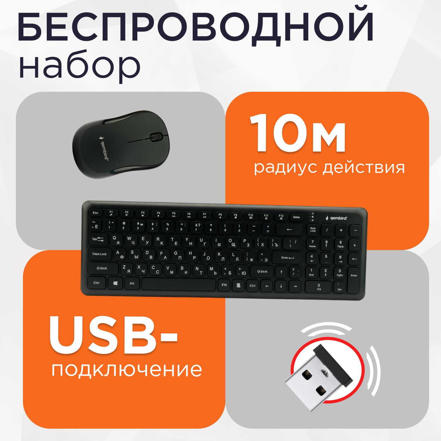 - + gembird делает хорошие наборы клавиатура+мышь. включил и все заработало. Это не Logitech, но за такие деньги качество исполнения и работы вполне хорошее для повседневных задач.