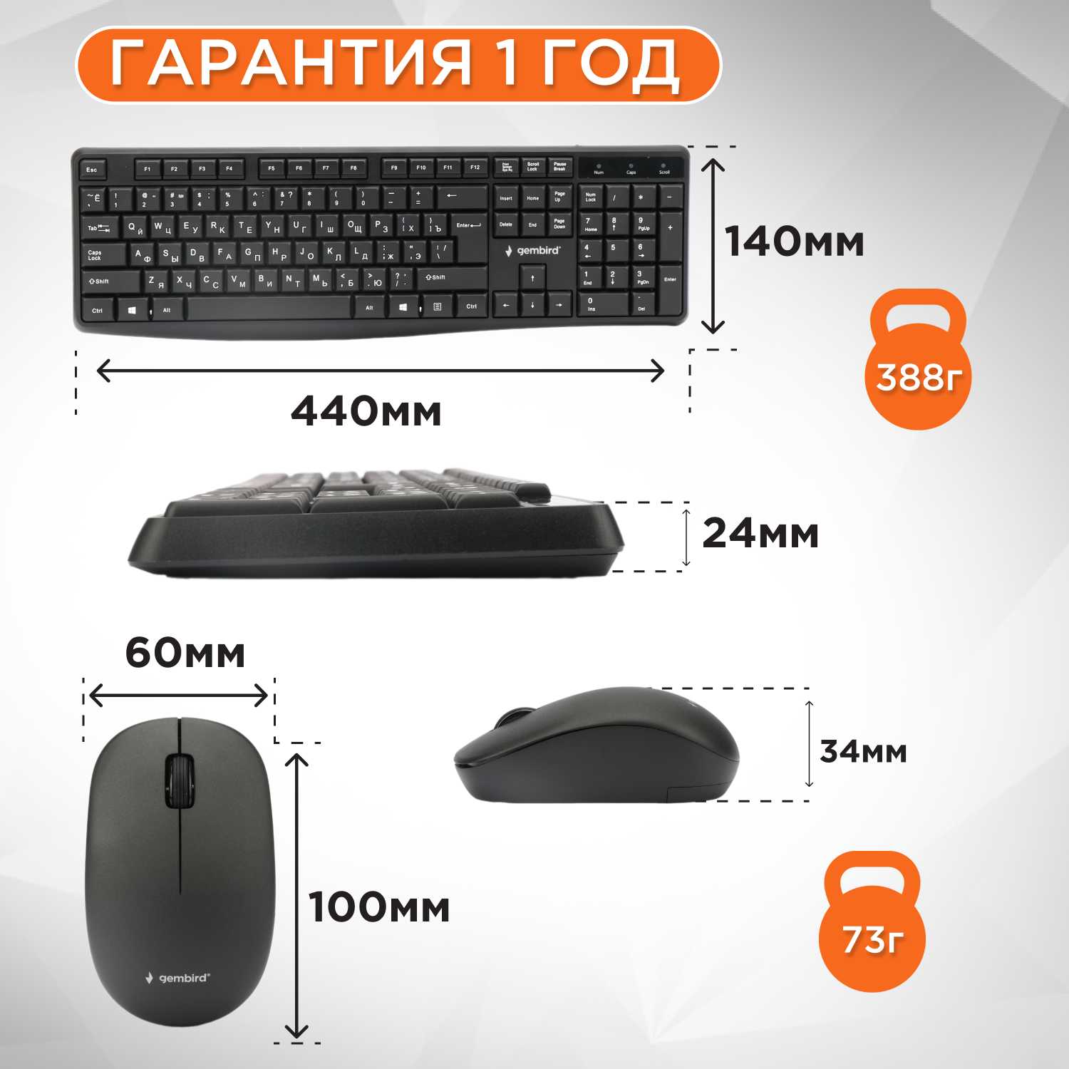 - состав комплекта: клавиатура + мышь