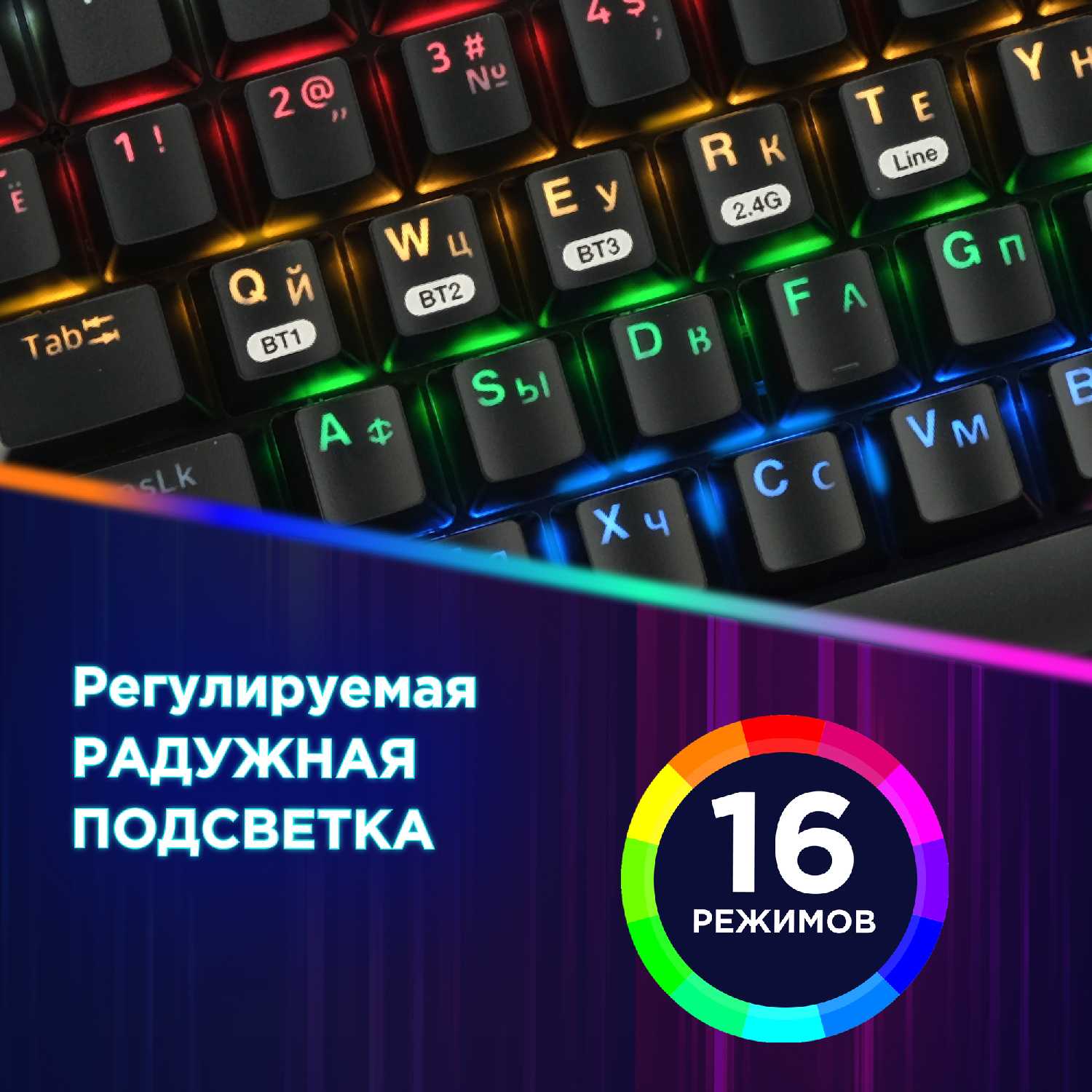 - + много режимов подсветки все клавиши работают хорошо и не громко, беспроводное и проводное подключение, на аккумуляторе с промиком вышло 1900