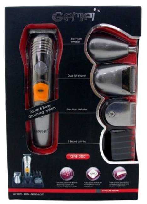В комплекте : | насадка для носа, насадка для ушей, подставка для зарядки, расческа, сменный нож |