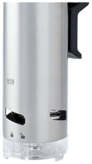 - + Надёжность, гоняю этот аппарат примерно раз в неделю, никаких сбоев не наблюдалось , все узлы регуляторы и остальное работает весьма исправно. Брал именно 800 ватт. чтоб не было резких скачков нагрева воды. Для варки колбас и ветчины (варка в вакууме) в домашних условиях идеален, только пару раз был отёк и то в самом начале использования и по незнанию моему. Использую в содружестве с 12 литровой кастрюлей. Яркий информативный дисплей, простота настройки , сенсорные кнопки для перехода в настройках(к ним нужно привыкнуть) и удобная крутилка с боку для выставления значений. Звуковые сигналы довольно громкие, сложно не услышать)) 1 сигнал-выход в режим и три сигнала -завершение программы. Выставить можно поддержание температуры от 1 до 90 и время до 99 часов и 59 мин. , показания термометра очень точные. При отсутствии воды не включится, при выкипании воды ниже уровня выключится и подаст сигнал. И самое главное бесшумный!