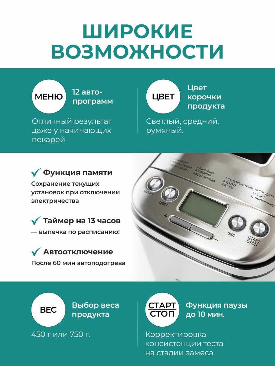 - максимальный вес выпечки: 750 г