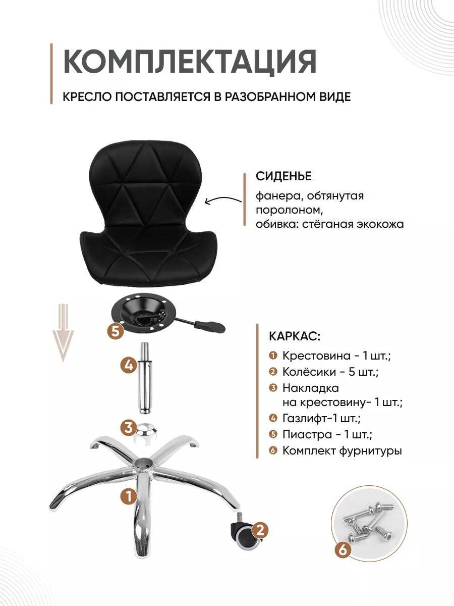 Положительным моментом является исключительная простота сборки: большинство пользователей, включая подростков, справляются с ней самостоятельно без инструкции за короткое время. Все детали интуитивно понятны, а соединения не требуют специального инструмента. Однако легкость монтажа контрастирует с качеством самих комплектующих: колеса могут быть установлены криво из-за брака в крестовине, а крепежные элементы часто не обеспечивают должной жесткости конструкции. Металлические ножки хоть и добавляют визуальной солидности, но страдают от некачественной обработки – заусенцы, царапины и неаккуратная покраска встречаются регулярно. Пластиковые элементы основания и крестовины подвержены сколам при транспортировке.