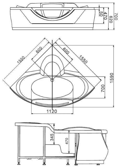 Отличная двухместная ванна. Размер у нее 150 на 150, что позволяет разместить ее в небольшом санузле. В то же время в ней можно комфортно расположиться. сделаны...